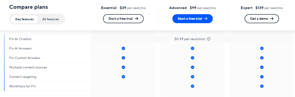 - Replacement Products: The pricing strategy here often centers on the value delivered through automation and efficiency gains. For instance, a company deploying AI for process automation in manufacturing might price its solution based on the cost savings and productivity improvements it delivers, compared to human labor. However, a special element of attention exists on the pricing unit if the overall goal is to enable customers to do more with fewer users, a “per seat” pricing will likely be very hard to scale. For instance, Intercom, one of the industry leaders in the Ticketing & User Chats space, monetized per-seat the existing operators, and “per solution” (aka per “end chat”) when there is no operator because AI has taken over.